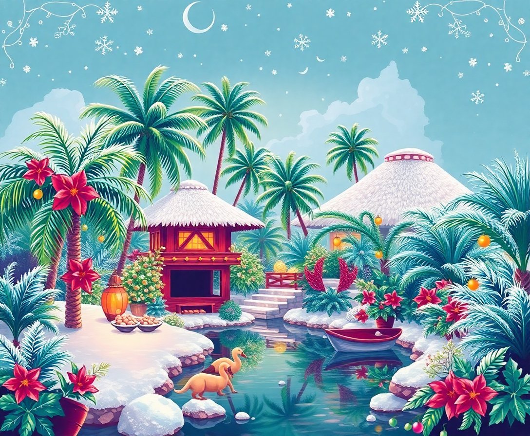 Perfect for holiday gifts! The unique tropical Christmas theme appeals to art lovers and holiday enthusiasts alike, making it an memorable present.