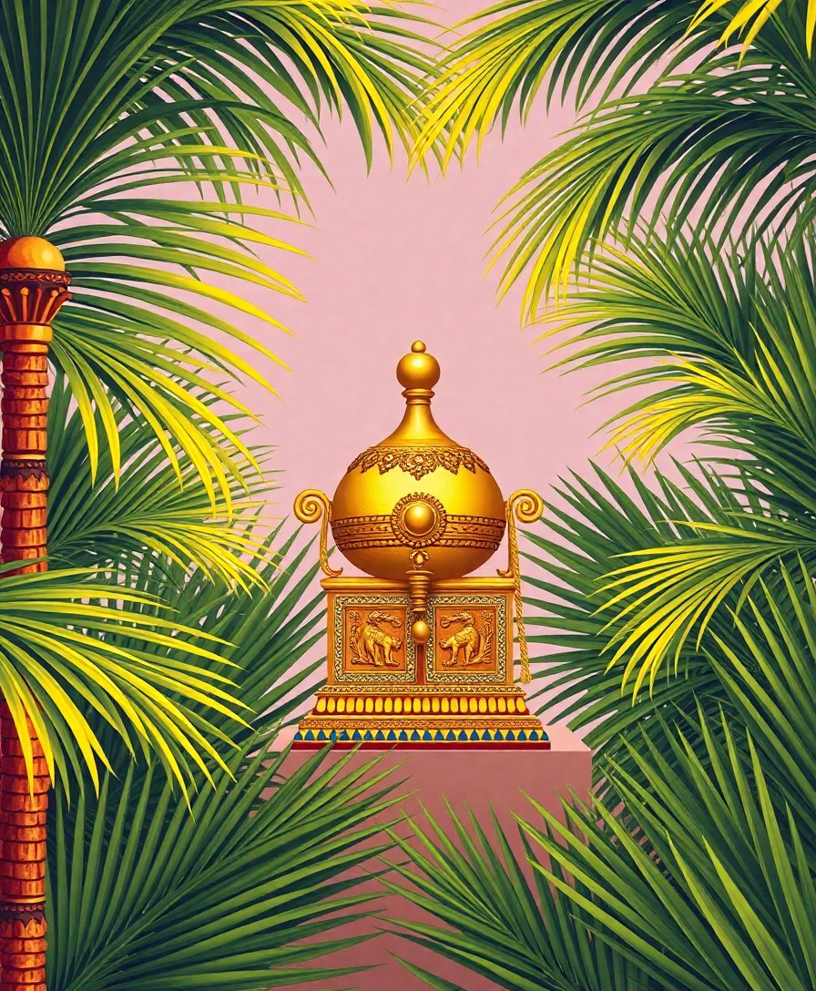 Moreover, this exceptional design showcases museum-quality artwork in accessible format. Similarly, the tropical palm backdrop enhances the golden artifact’s magnificence. Additionally, premium materials ensure your completed painting becomes a treasured cultural display piece for years.