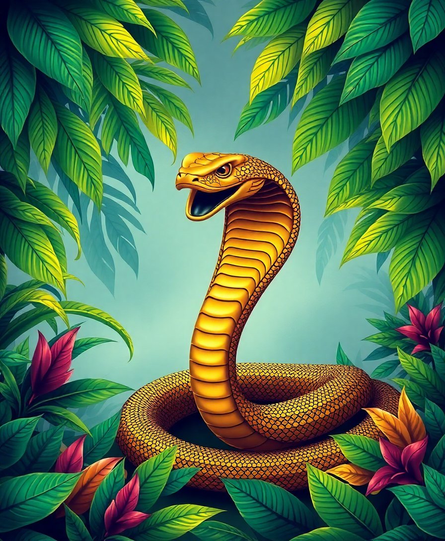 Transform your space with the mesmerizing Gilded Cobra Tropical Canopy Paint By Numbers, where ancient Egyptian mystique meets vibrant tropical splendor. This captivating artwork showcases an ornate cobra artifact nestled within lush emerald foliage, creating a stunning masterpiece that bridges historical grandeur with natural beauty.