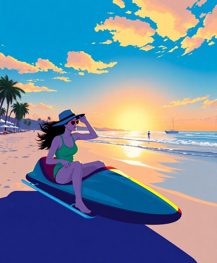 Transport yourself to sun-soaked shores with vibrant roller skating scenes. This pop culture masterpiece captures the essence of beachfront freedom and retro charm.