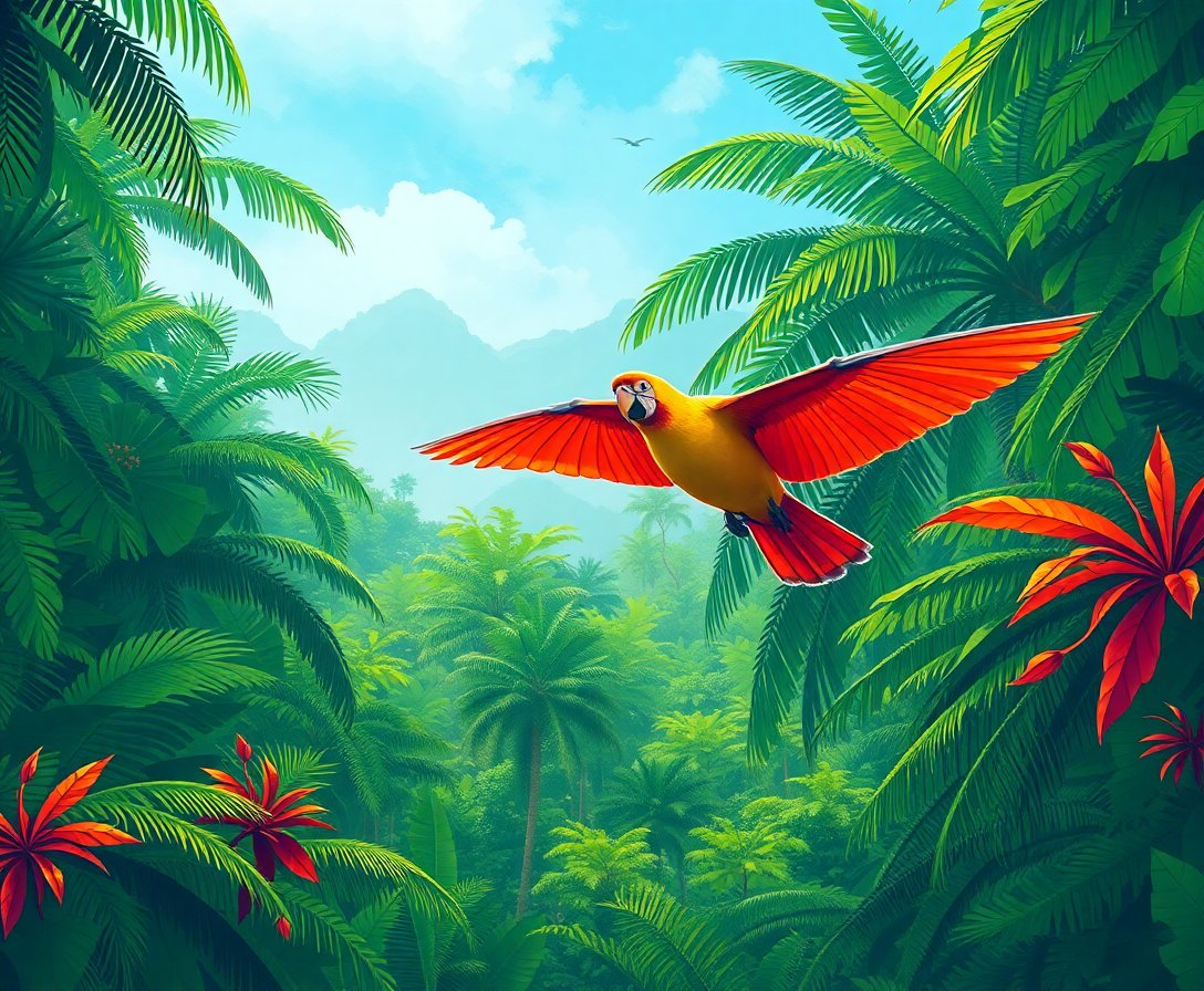 The high-quality linen canvas provides ample space for detailed tropical canopy work. The generous size ensures every misty detail and iridescent highlight has room to shine.