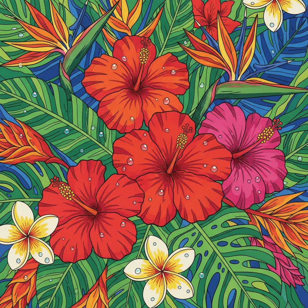 Transform your space with the breathtaking beauty of Botanical Spring Blossoms through this stunning Glistening Tropical Blossoms Paint By Numbers kit. Moreover, this captivating design showcases vibrant tropical flora adorned with delicate water drops that seem to shimmer in morning light.