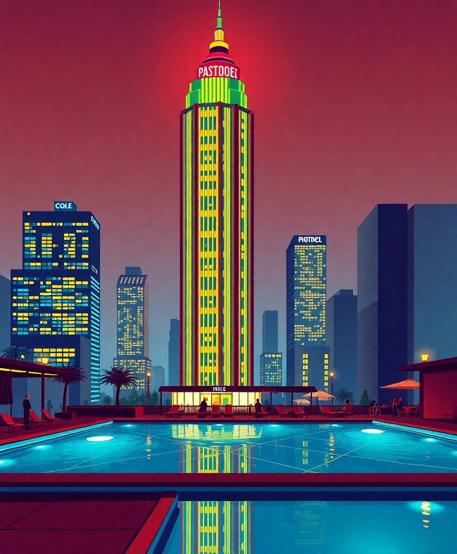 Transform your living space with this stunning Glowing Deco Tower Pool Paint By Numbers masterpiece. This captivating architectural cityscape combines tropical elegance with vibrant neon glow effects. Moreover, each brushstroke brings you closer to creating your own artistic vision.