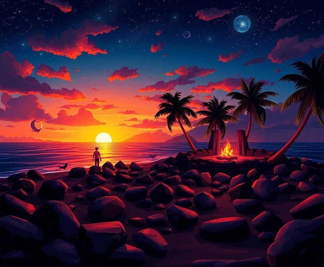 This therapeutic activity reduces stress while enhancing focus and mindfulness. The warm bonfire colors naturally uplift your mood and create positive energy. Each brushstroke brings you closer to completing your personal tropical paradise. The meditative rhythm of painting promotes deep relaxation and mental clarity.