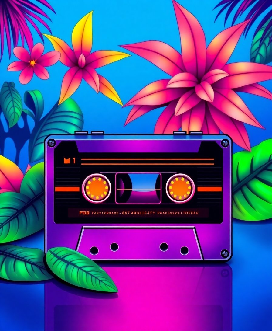 Glowing Tropical Cassette Player Paint By Numbers