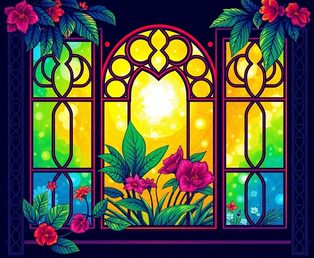 Ultimately, complete the finest details that bring your Celtic window to life. Therefore, step back and admire your finished tropical masterpiece. Finally, the warm sunset hues create an enchanting stained glass effect.