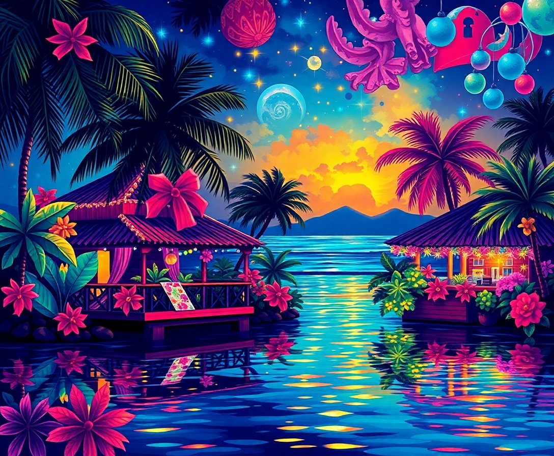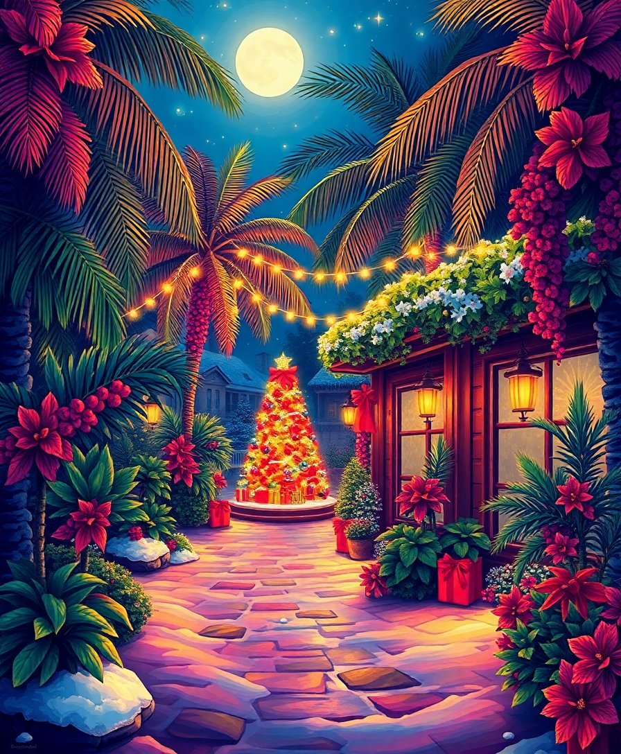 Perfect for gift-giving! This unique tropical Christmas theme offers something different from traditional holiday art, making it an memorable present for art lovers.