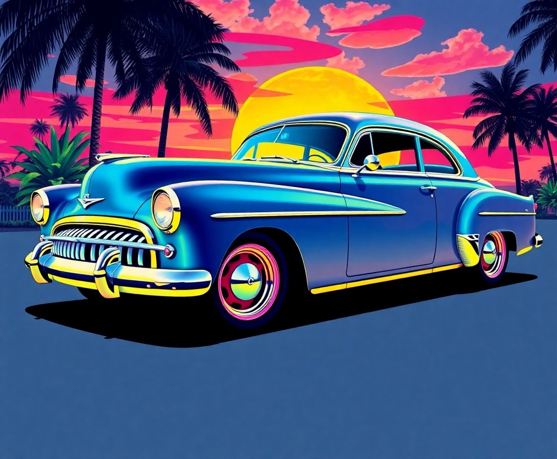 Transform your creative space with this stunning Glowing Tropical Coupe Paint By Numbers masterpiece. This captivating design combines retro charm with tropical paradise vibes, featuring a classic coupe bathed in mesmerizing bioluminescent glow. Perfect for artists seeking a unique blend of nostalgic cult cinema aesthetics and tropical escapism.