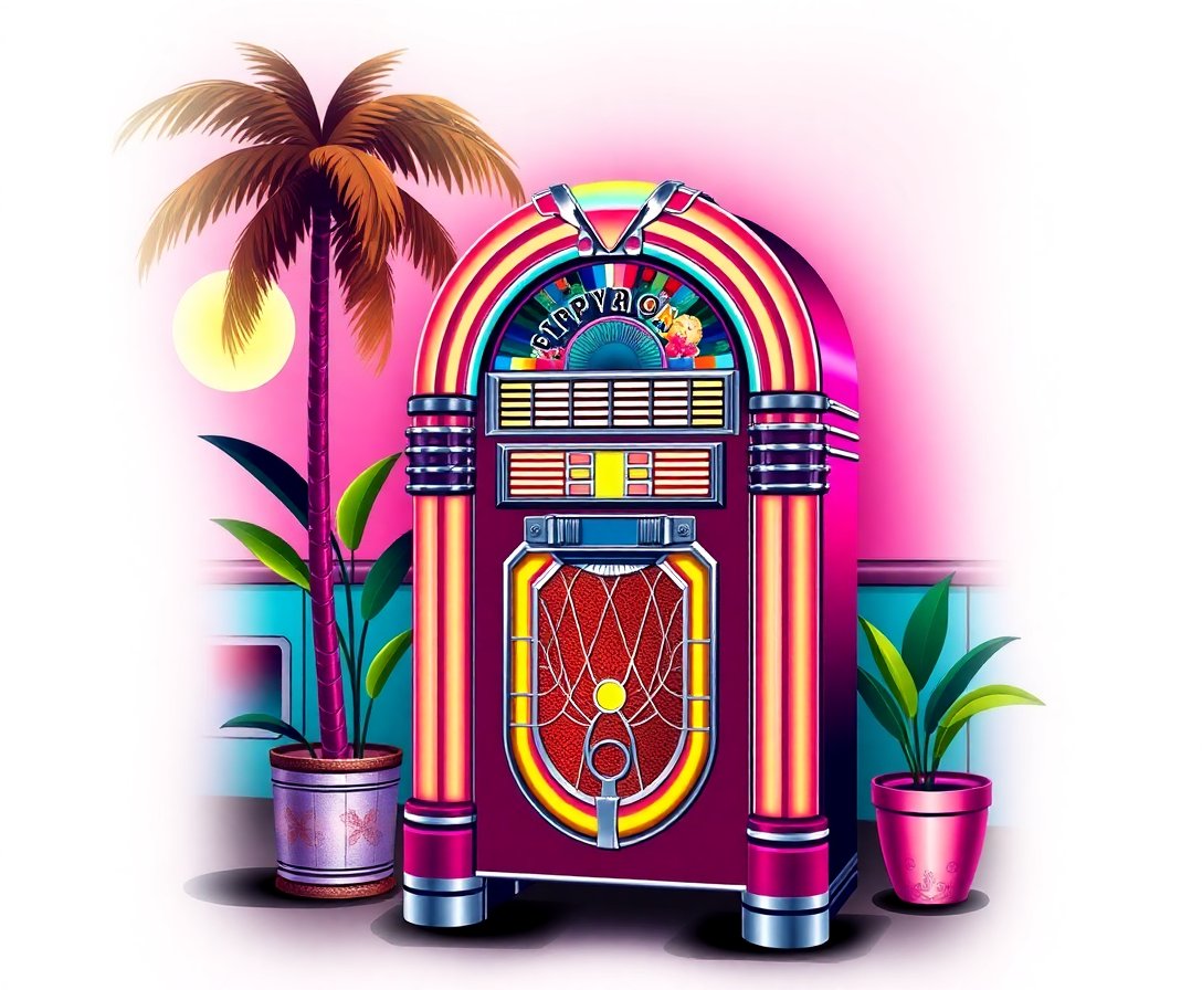 Ultimately, add the final details to bring your pop culture masterpiece to life. The glowing elements and tropical ambiance create stunning visual depth. Additionally, the realistic wurlitzer details showcase authentic diner atmosphere perfectly.