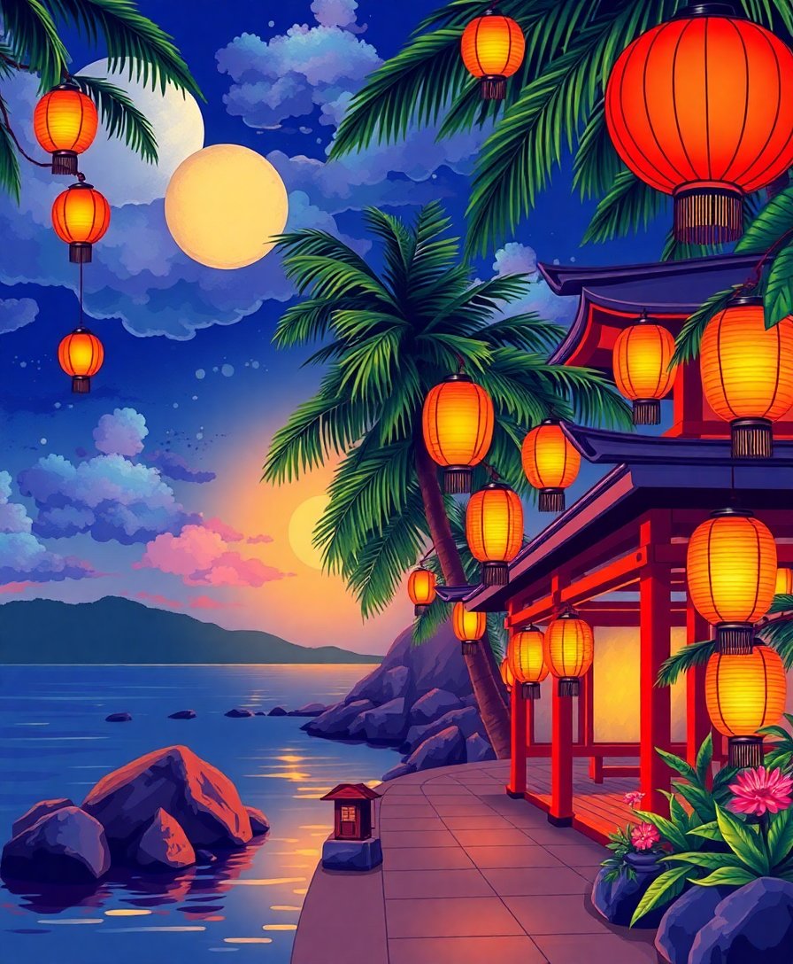 Ultimately, step back and admire your completed tropical masterpiece. Consequently, the glowing lanterns create warmth and tranquility in any room. Thus, your finished artwork becomes a personal escape to paradise.