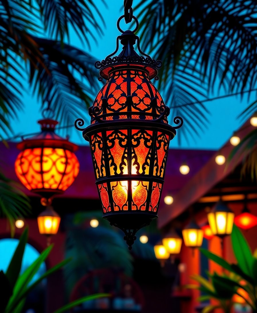 Ultimately, step back and admire your completed glowing lantern artwork. Furthermore, the warm amber light seems to dance across the canvas. Therefore, your vintage tropical masterpiece radiates the mystical energy of ancient bazaars.