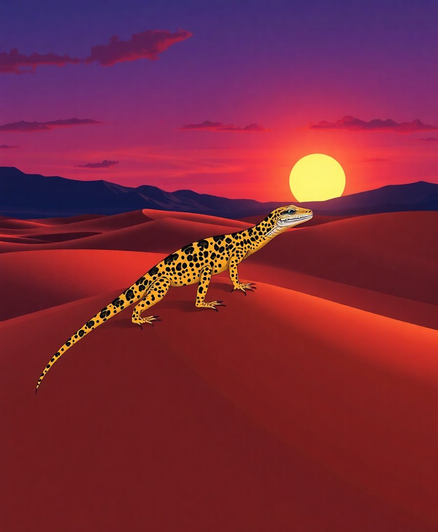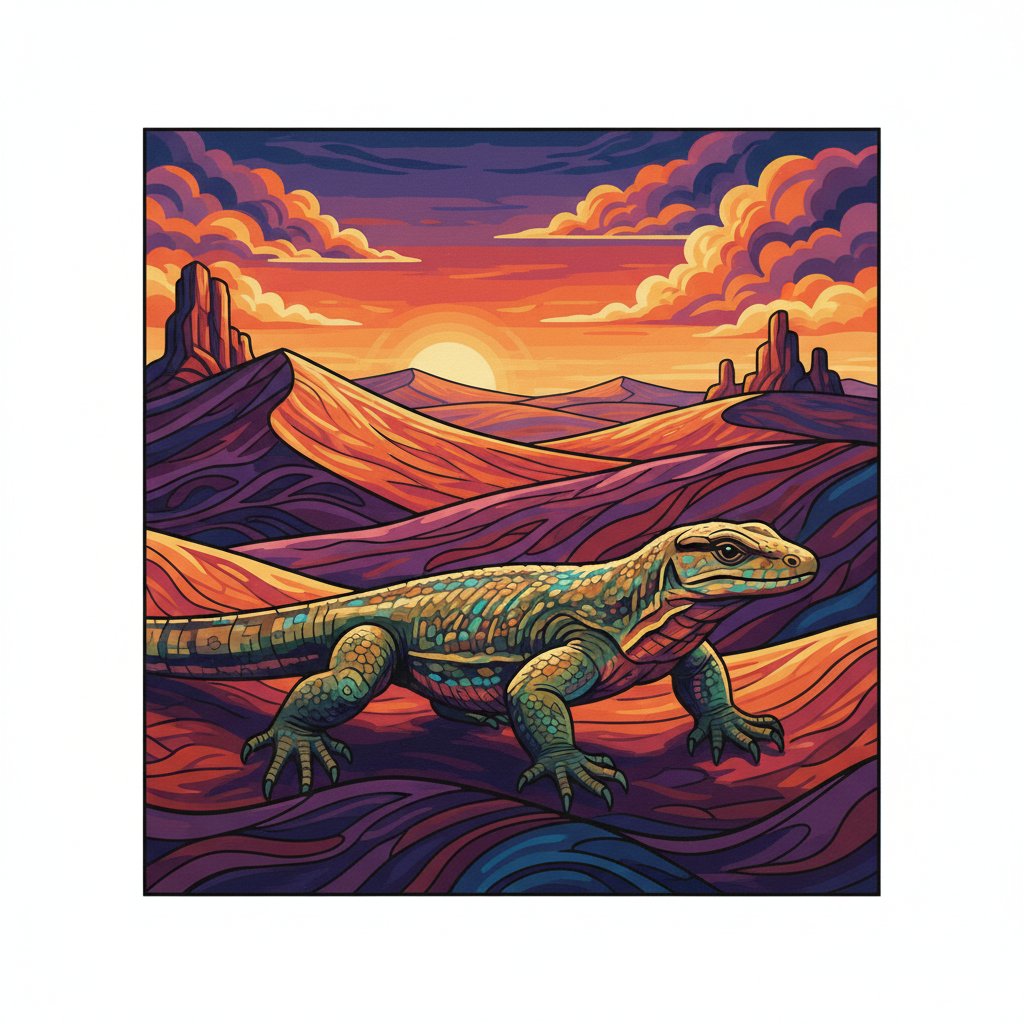 Transform your creative space with the breathtaking Goanna Crossing Twilight Dunes Paint By Numbers masterpiece. This stunning kit captures a magnificent monitor lizard traversing golden sand dunes beneath a spectacular twilight sky. Each brushstroke brings this desert scene to life.