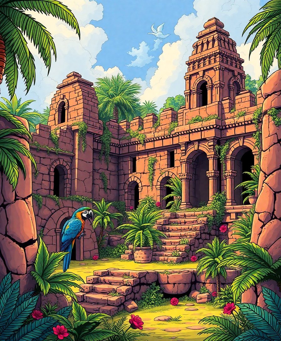 Transform your artistic journey with this captivating Golden Age Macaw Ruins Paint By Numbers masterpiece. Furthermore, this vintage-inspired design combines tropical wildlife with mysterious ancient ruins, creating a stunning piece that celebrates the golden era of comic artistry.