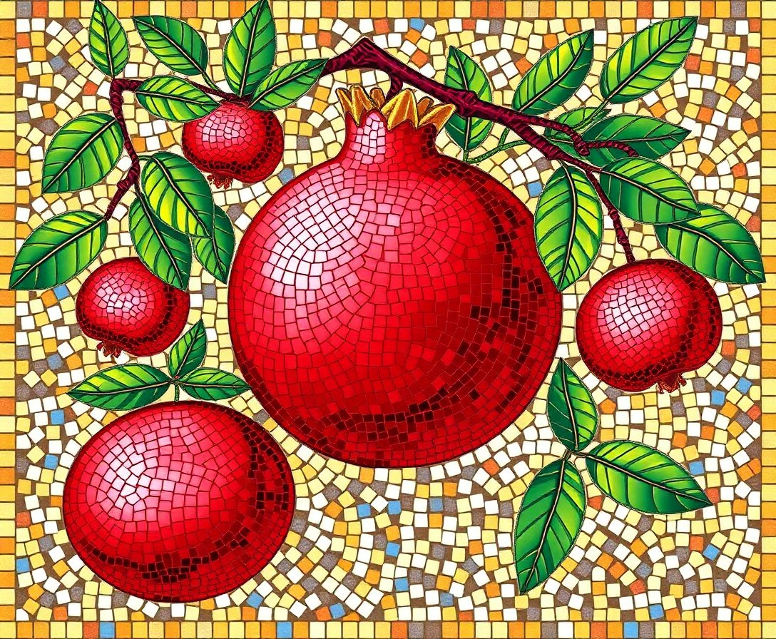 Transform your artistic space with this Golden Byzantine Pomegranate Mosaic Paint By Numbers kit. This intricate design captures the timeless beauty of Byzantine mosaics through carefully crafted numbered sections. Each crimson pomegranate detail reflects the rich cultural heritage of historical art forms.