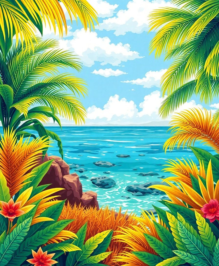Experience the joy of creating your own Golden Coastal Fronds Paint By Numbers masterpiece. This creative journey transforms simple numbered sections into breathtaking tropical art that celebrates the natural beauty of golden coastal vegetation.