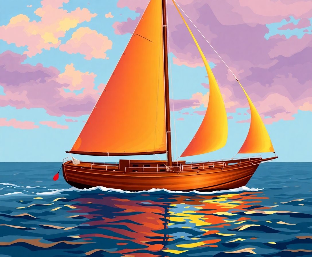 Transform your walls with this stunning Golden Hour Mahogany Sloop Paint By Numbers masterpiece. This vintage-inspired sailboat scene captures the warmth of coastal sunsets. Moreover, the realistic detail brings nautical charm to any space.