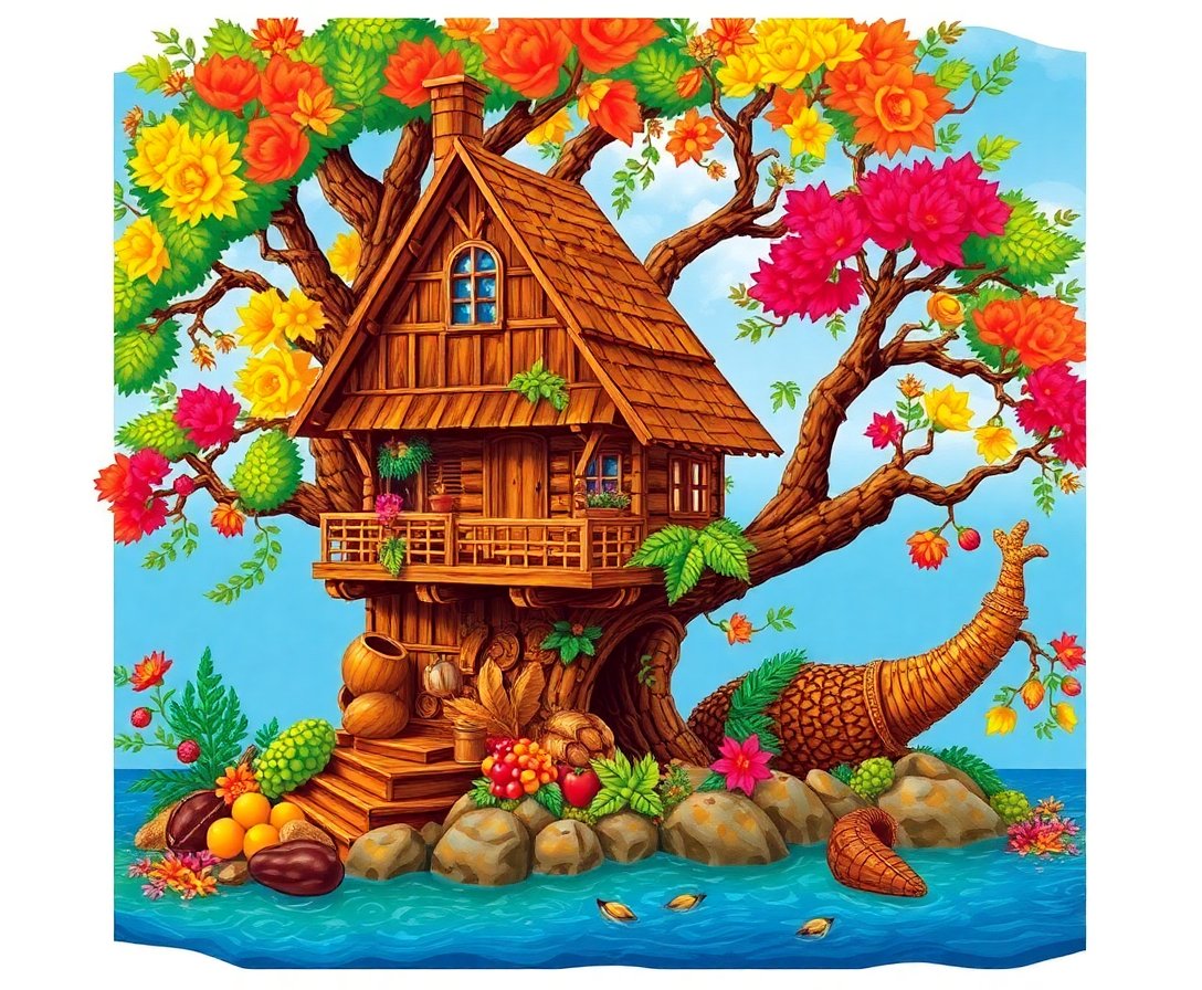 Embrace the joy of creating your own Golden Island Treehouse Cornucopia Paint By Numbers masterpiece. Furthermore, this kit makes an ideal gift for art enthusiasts and anyone seeking a peaceful creative escape.