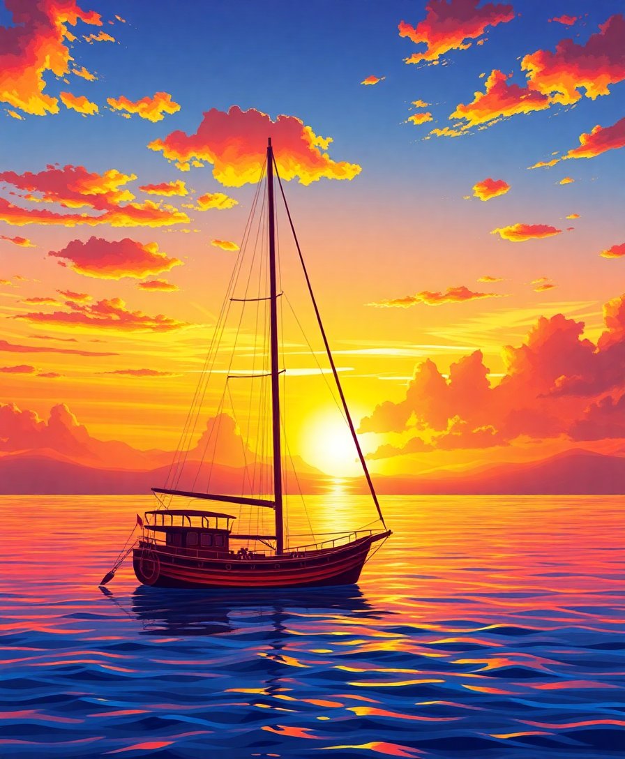 Transform your creative space with the Golden Sepia Island Schooner Paint By Numbers masterpiece. This stunning seascape captures the romance of tropical sailing during golden hour. Furthermore, each brushstroke brings nostalgic charm to life.