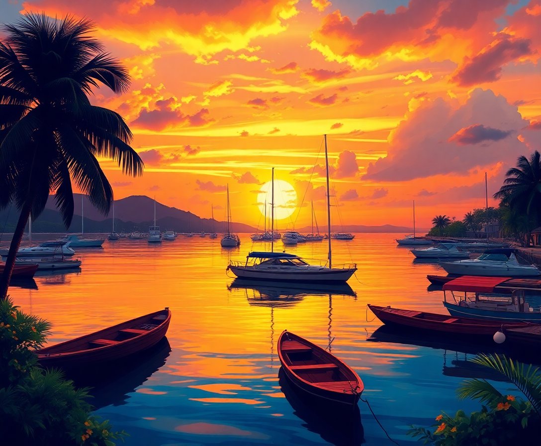 Golden Tropical Harbor Dusk Paint By Numbers