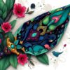 The intricate golden details and tropical elements create a unique Byzantine-inspired masterpiece. The ornate patterns showcase both vintage elegance and vibrant natural beauty.