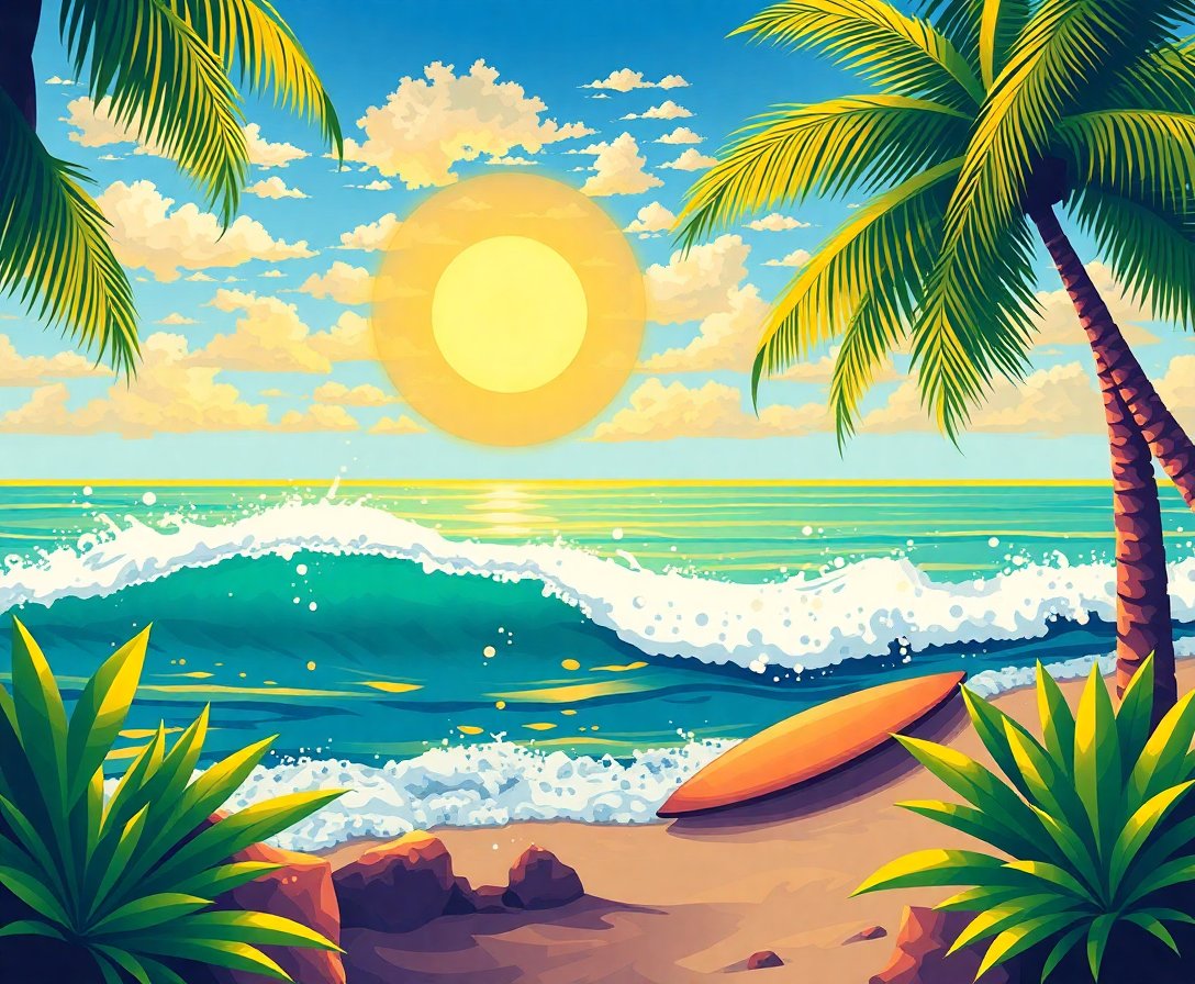 Transform your space with the stunning Golden Tropical Surf Rental Paint By Numbers, capturing the essence of retro surf culture. This captivating design features weathered surfboards against a golden hour backdrop. Additionally, the tropical setting evokes memories of endless summer days.