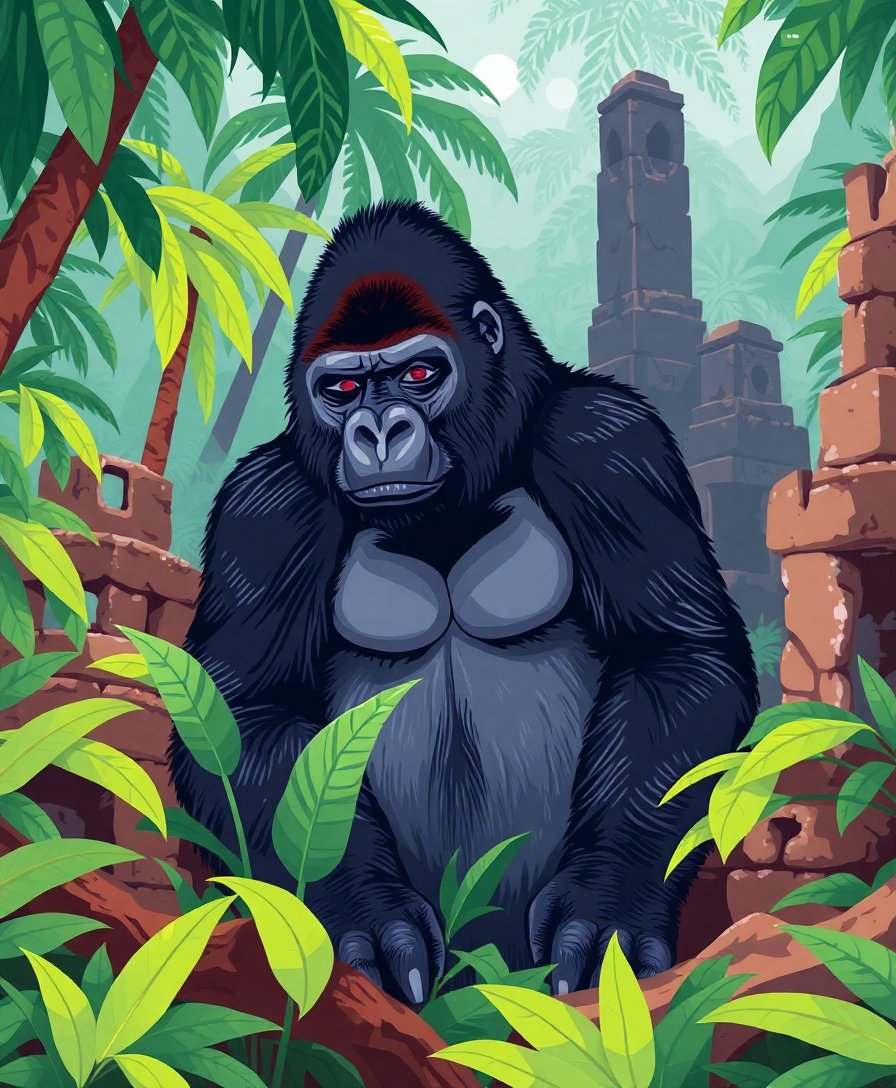 Transform your creative space with the stunning Gorilla Amidst Tropical Ruins Paint By Numbers masterpiece. This captivating design brings together majestic wildlife and ancient mystery. Experience the thrill of painting a powerful silverback gorilla surrounded by lush green vegetation and weathered stone ruins.