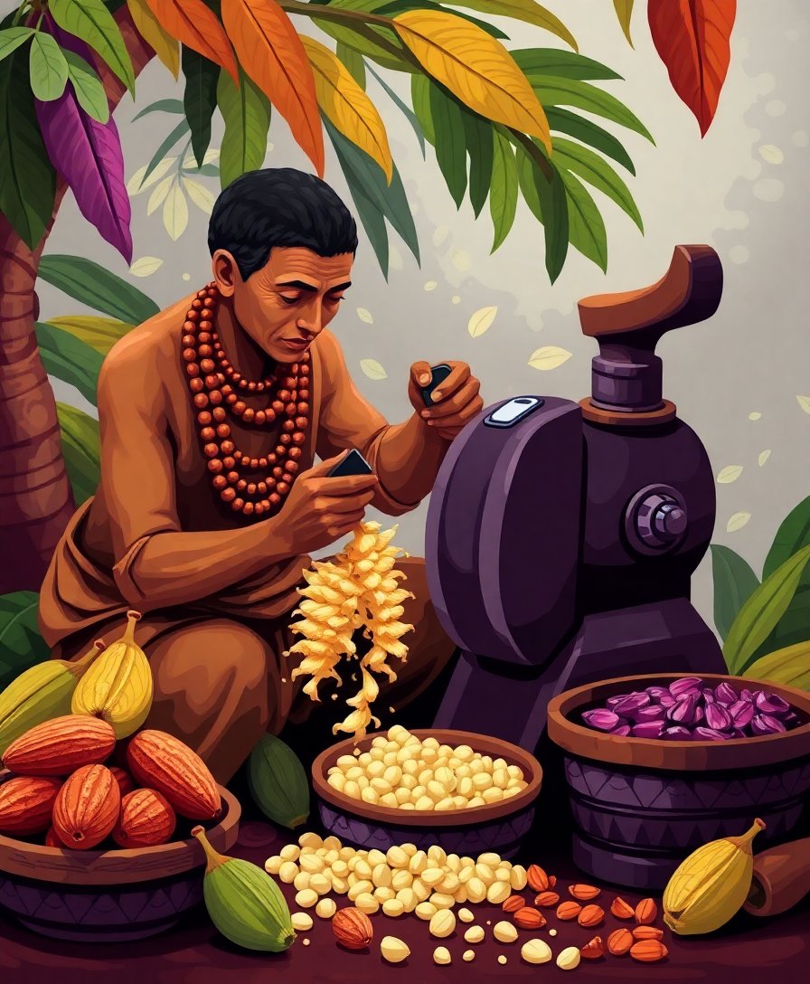 This artwork celebrates ancient cacao grinding traditions with botanical accuracy. The earthy tones and cultural significance create both educational and decorative value for your home.