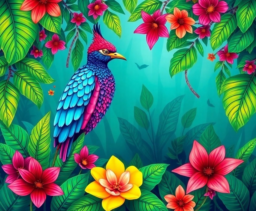 Ultimately, apply final details to the monstera leaves and guardian’s features. Your completed masterpiece radiates vintage charm and folkloric magic. Display your creation proudly as a testament to artistic achievement.