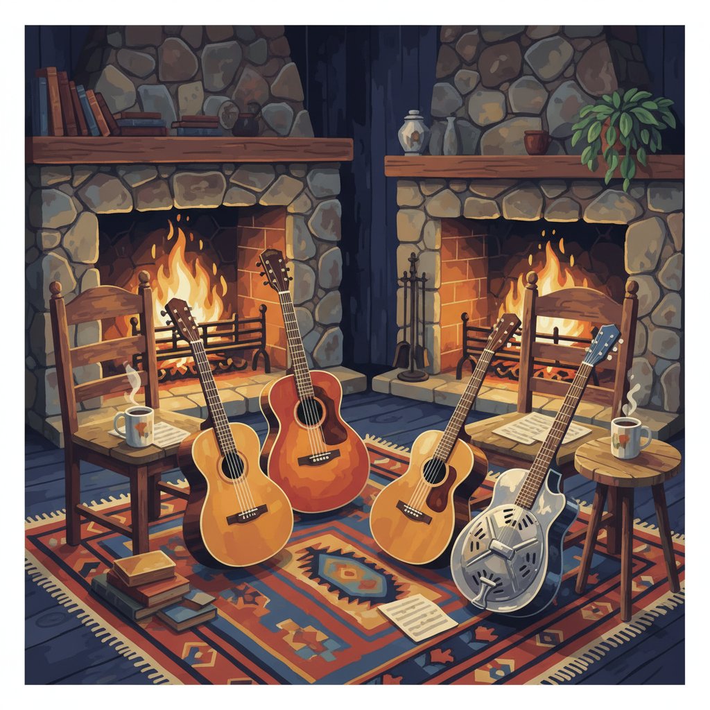 Yes! The vintage firelight aesthetic complements both contemporary and traditional decor styles beautifully. The amber tones and guitar silhouettes create warmth in any room.