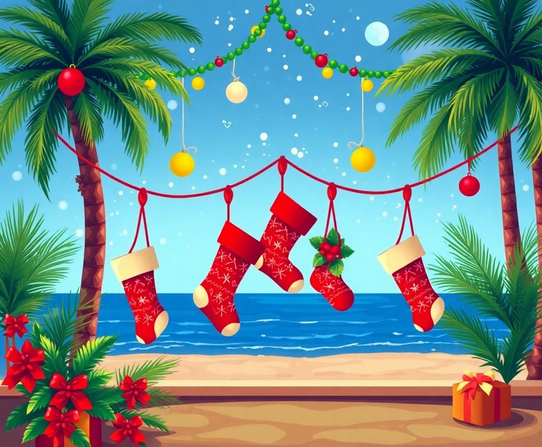 Transform your holiday spirit into artistic expression with the Hanging Stockings By Palms Paint By Numbers kit. This enchanting Victorian-inspired design captures the magical warmth of Christmas morning. Additionally, palm fronds create an unexpected tropical twist on traditional holiday decor.