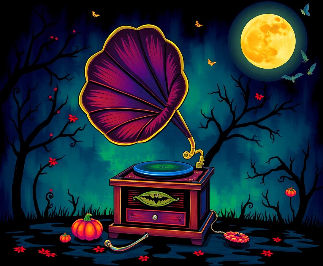 Perfect for Halloween! The spooky gramophone and cobweb details create an atmospheric piece that enhances any haunted decor theme beautifully.