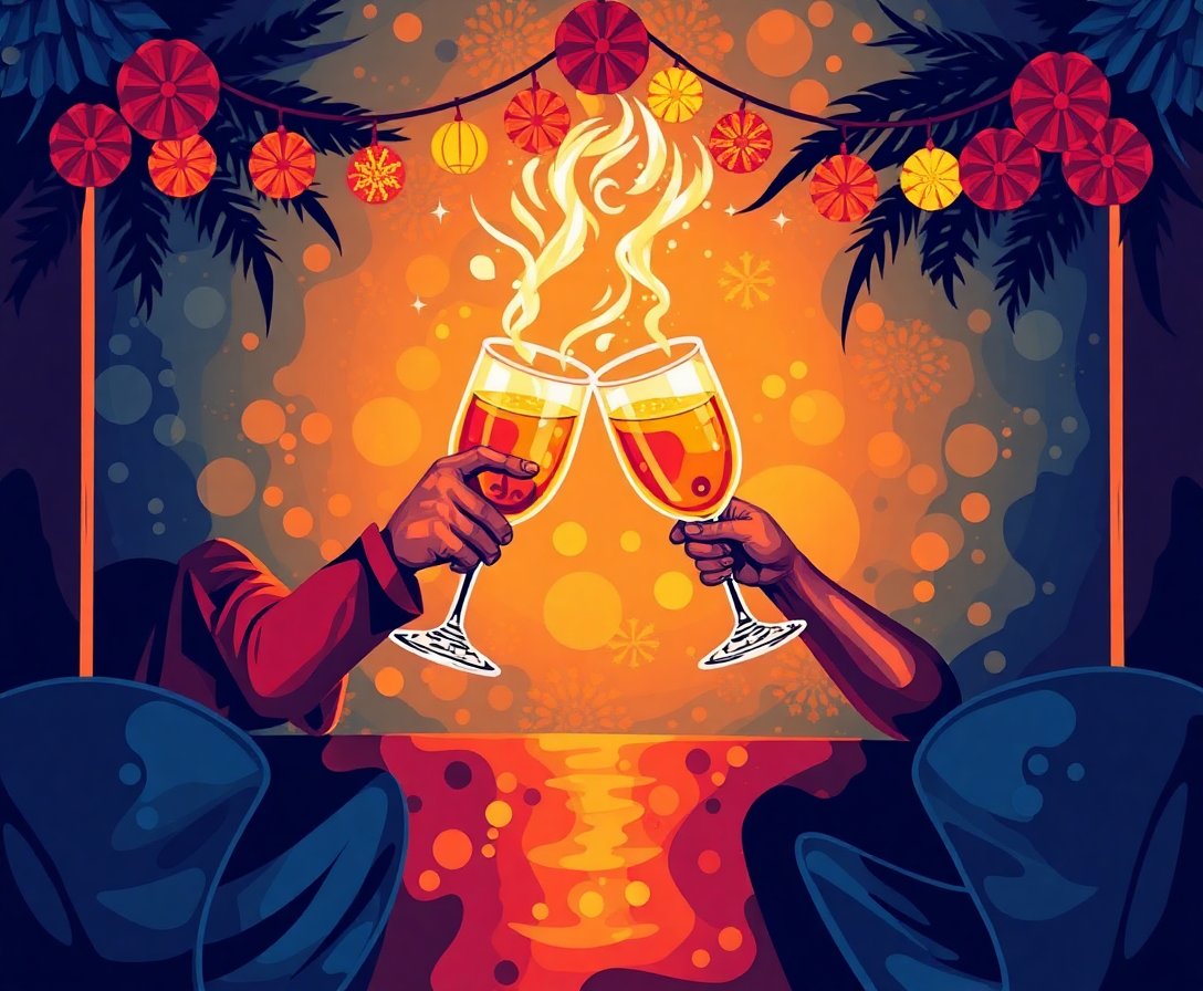 Ultimately, witness your champagne-soaked cabaret scene come alive with tropical warmth. The finished piece radiates sophistication and captures the essence of midnight celebrations perfectly.