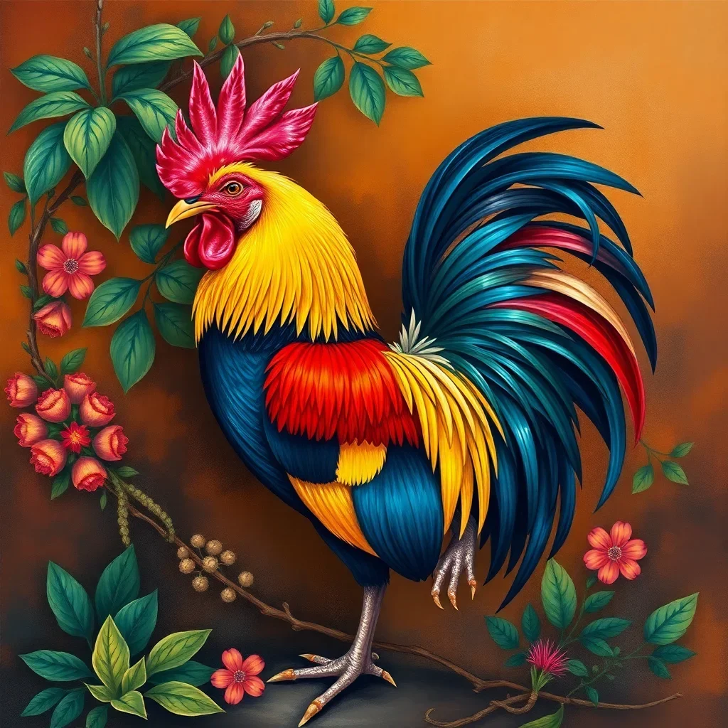 Ultimately, add final touches with the small brush for detailed areas. Allow proper drying time between sessions. Your completed rooster portrait will showcase vibrant morning hues and rustic charm.