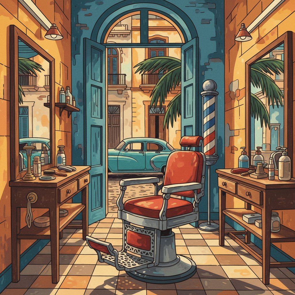 The high-quality linen canvas measures 16×20 inches, perfect for displaying in any room. The detailed design captures every nostalgic element of the vintage Cuban barbershop facade.