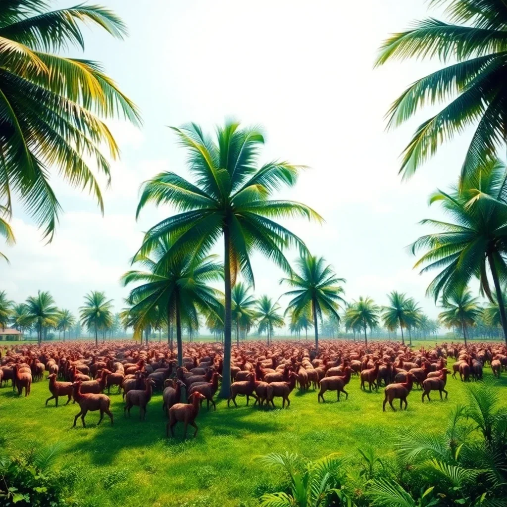 Ultimately, add final details to complete your tropical paradise. Your finished artwork showcases gentle cattle beneath towering coconut palms. Display proudly in your favorite room.