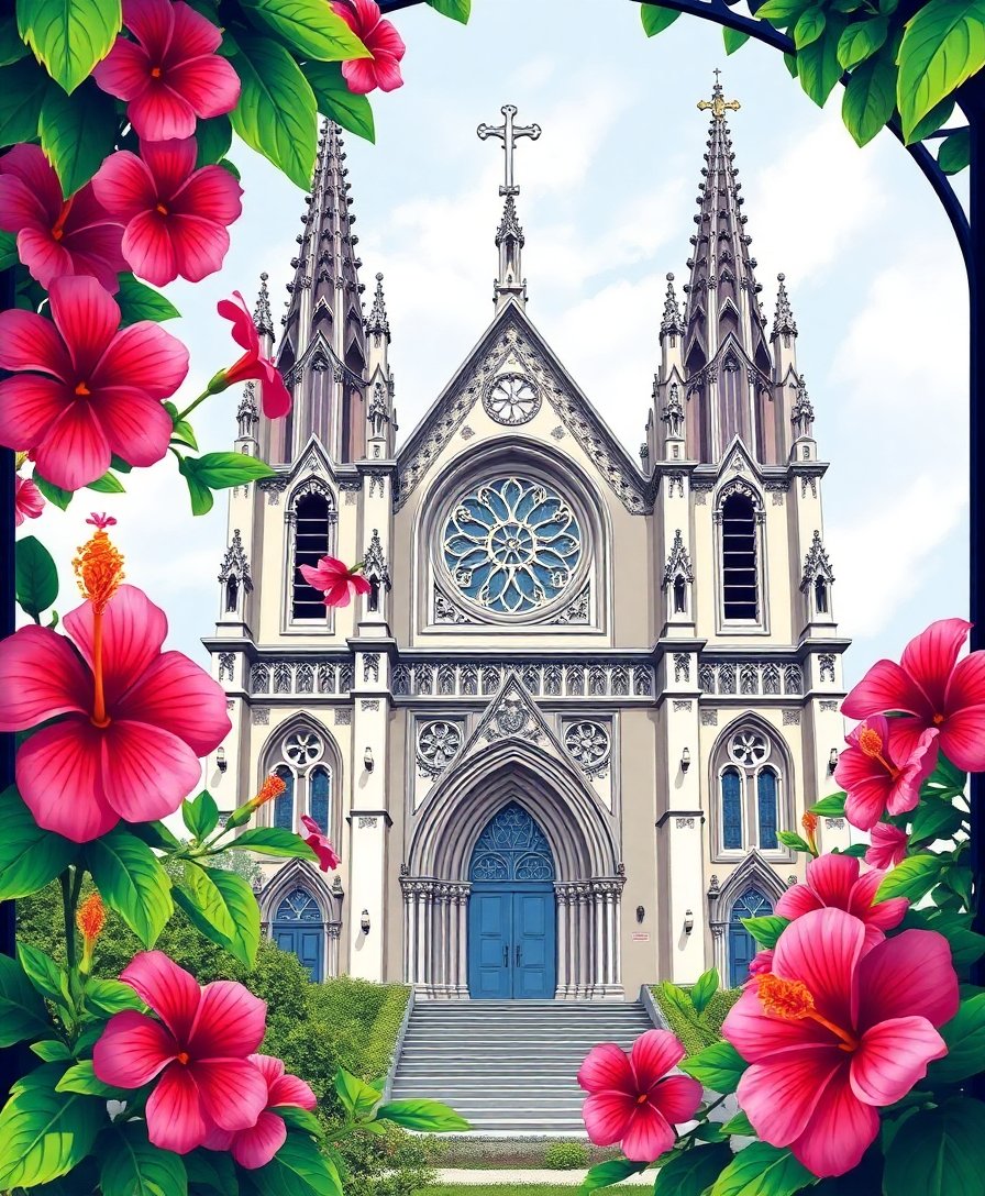Hibiscus Framed Cathedral Iron Paint By Numbers