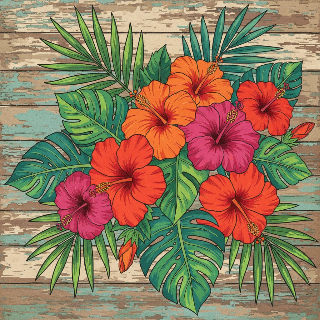 Start your artistic adventure today and discover the joy of creating tropical beauty. This vintage-inspired hibiscus design transforms blank canvas into stunning botanical spring blossoms artwork.