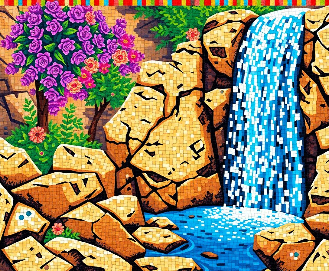 Ultimately, step back and admire your completed Hidden Antiquity Waterfall Mosaic Paint By Numbers creation. Indeed, the realistic water effects and intricate mosaic details showcase your artistic achievement beautifully.