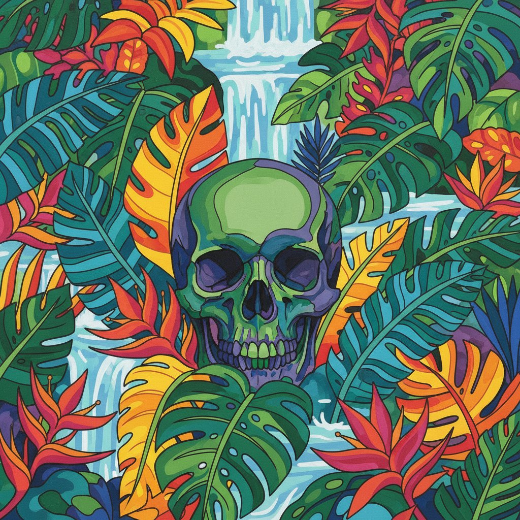 Embrace your artistic side with this captivating Hidden Cranium Tropical Leaves Paint By Numbers experience. Order today and discover the joy of creating gothic botanical art.