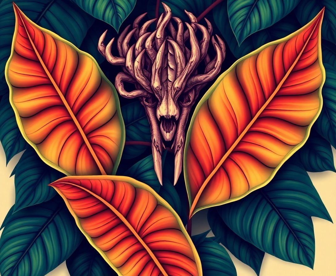 This unique gothic botanical design makes an excellent gift for art lovers, Halloween enthusiasts, or anyone who appreciates vintage macabre aesthetics combined with tropical elements.