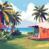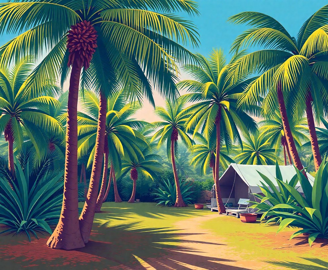 Transform your space into a tropical paradise with this captivating Hidden Palm Grove Camp Paint By Numbers masterpiece. This coastal hideaway design captures weathered palm fronds swaying gently over a secluded beachside retreat, bringing lush tropical vibes directly to your walls.