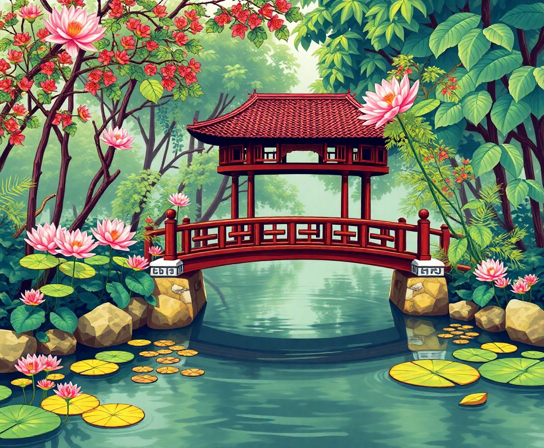 Complete Hidden Teak Lotus Bridge Paint By Numbers Kit