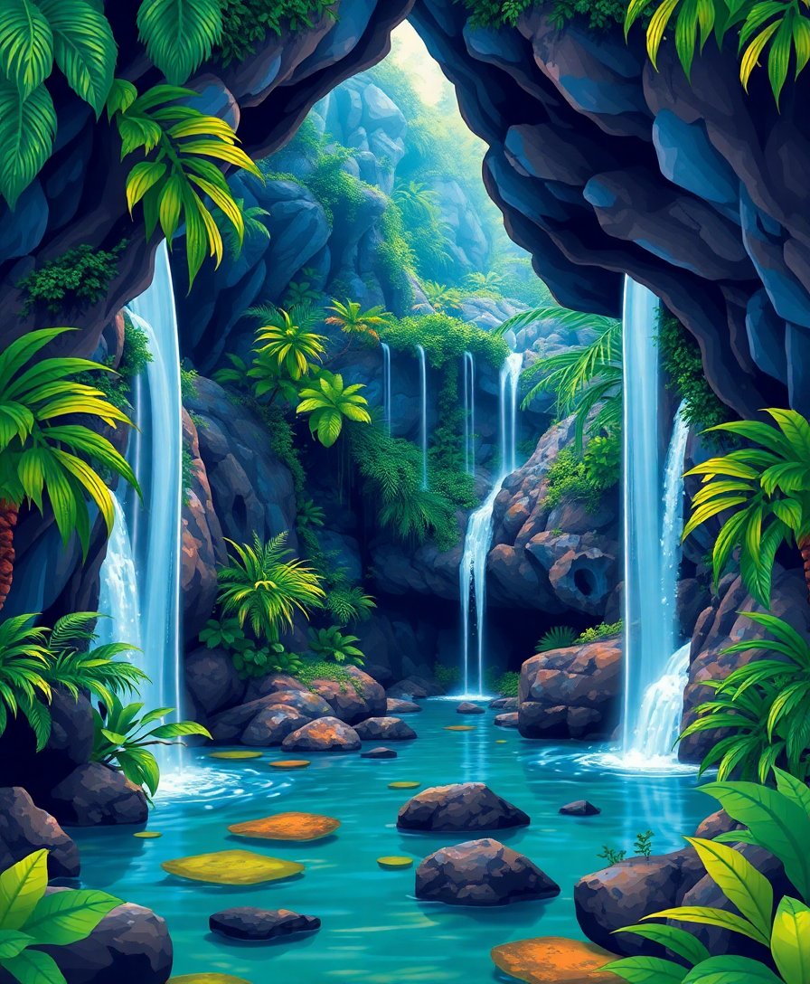 Hidden Tropical Cave Cascade Paint By Numbers