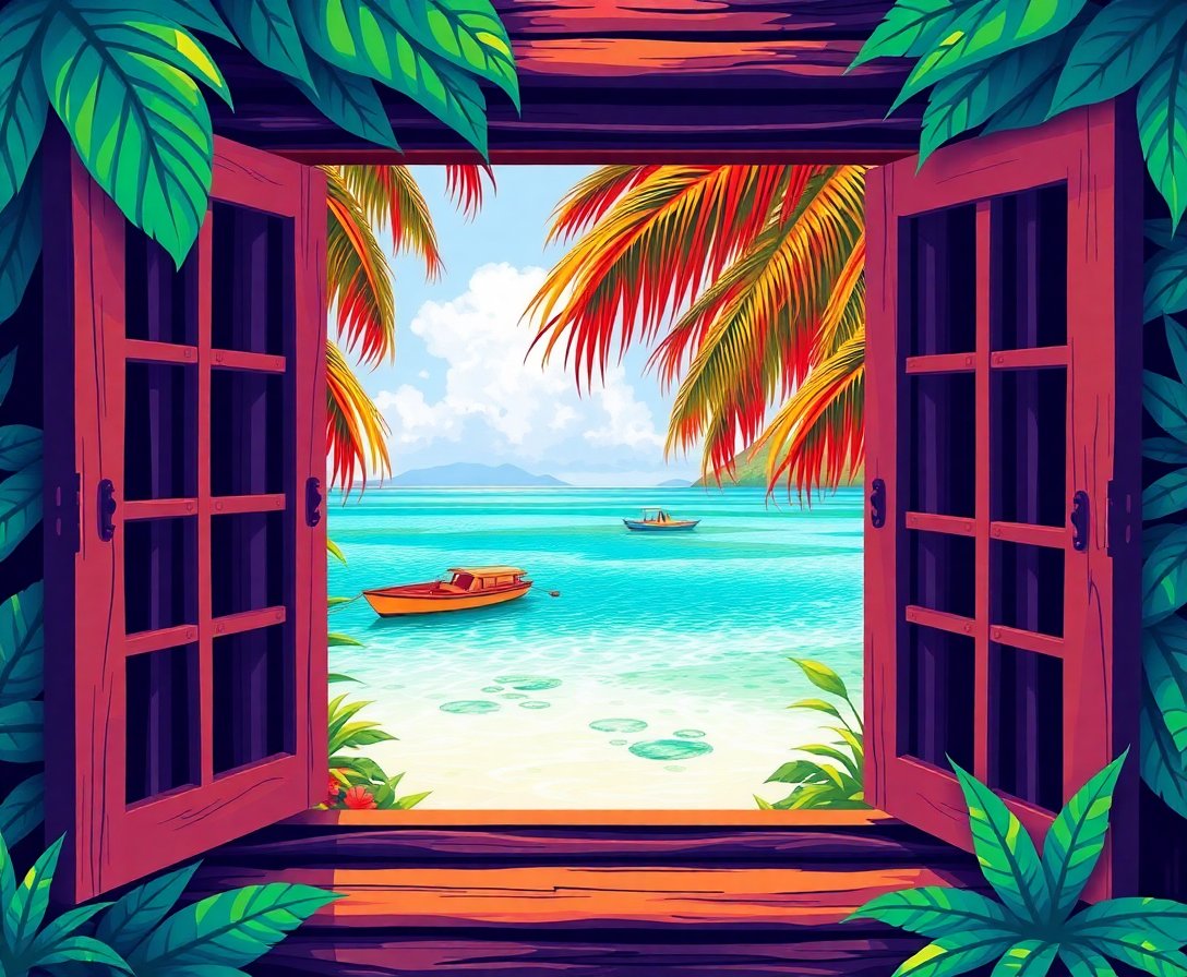 Transform your space with this enchanting Hidden Tropical Lagoon Window Paint By Numbers masterpiece. This captivating design reveals a serene paradise through an elegant window frame. Moreover, the lush tropical scenery creates an instant escape to your own private retreat.
