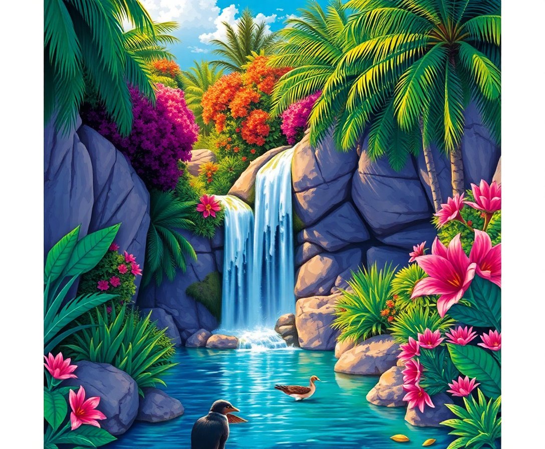Escape to paradise with this Hidden Tropical Oasis Falls Paint By Numbers masterpiece. Transform your space into a tranquil retreat. Meanwhile, discover the therapeutic joy of creating your own tropical sanctuary through guided artistic expression.