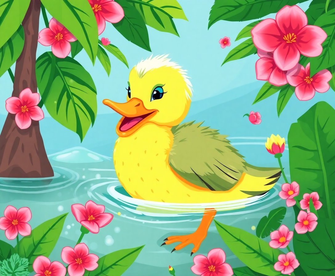 Ultimately, step back and admire your completed tropical masterpiece featuring the beloved duckling character. Additionally, the vintage charm combined with botanical illustration techniques creates a truly unique piece. Your finished artwork becomes a stunning conversation starter for any room.