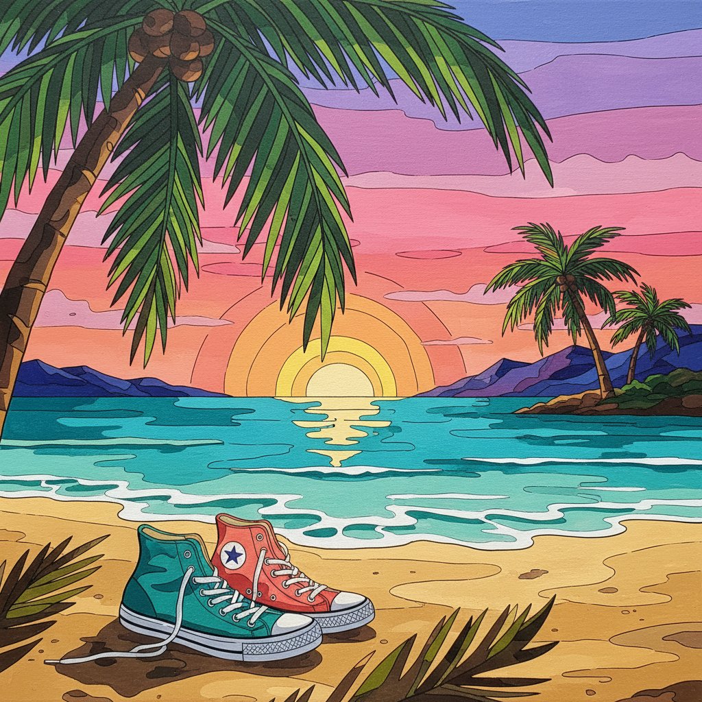 Transform your space with this vibrant High Tops Under Palms Paint By Numbers masterpiece. This tropical-inspired artwork combines retro sneaker culture with paradise vibes. Perfect for any art enthusiast seeking creative relaxation.