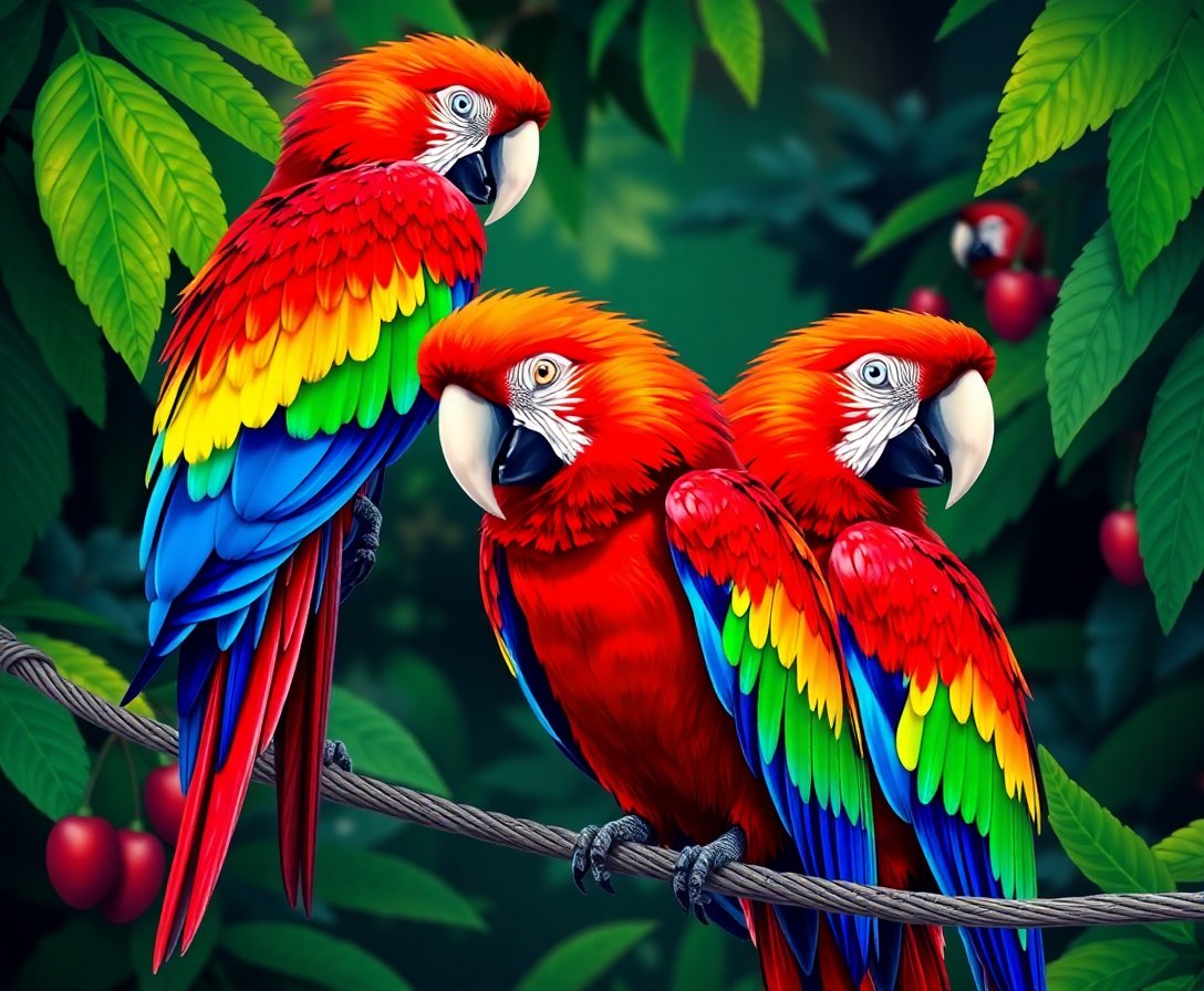 Transform your creative space with the stunning High Wire Scarlet Macaws Paint By Numbers kit. This captivating design features vibrant scarlet macaws perched gracefully on suspension bridge cables. Meanwhile, the realistic jungle backdrop creates an extraordinary artistic experience that combines architectural elements with tropical wildlife beauty.