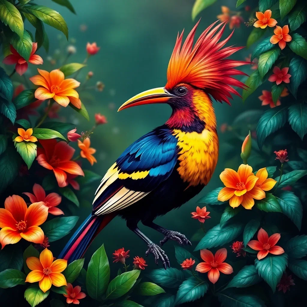 Ultimately, complete the tangled flora background to frame your magnificent hoatzin. Add final details and highlights for depth. Your finished masterpiece showcases the bird’s unique beauty against lush tropical vegetation.
