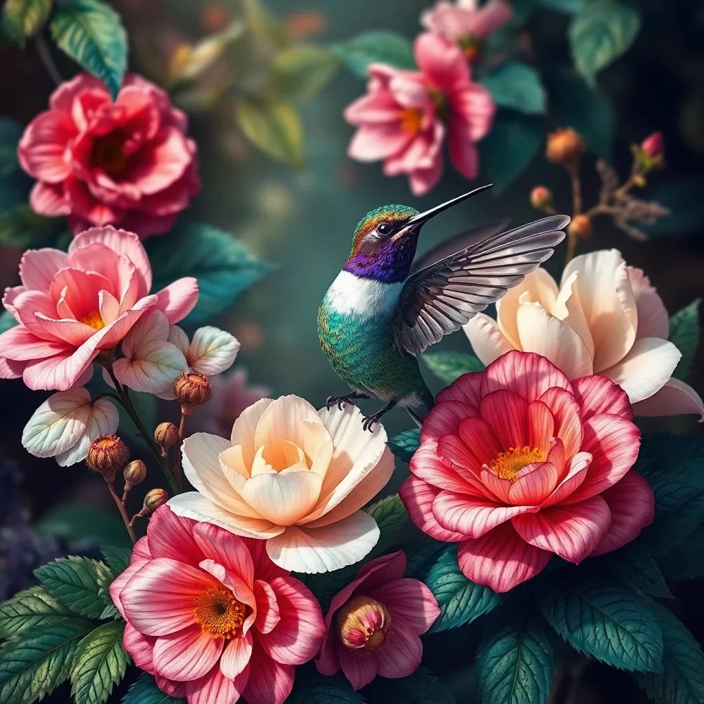 Ultimately, step back and admire your finished creation. The vintage botanical elements complement the graceful hummingbird beautifully. Furthermore, your completed artwork showcases both artistic skill and personal achievement. Display your masterpiece with pride.